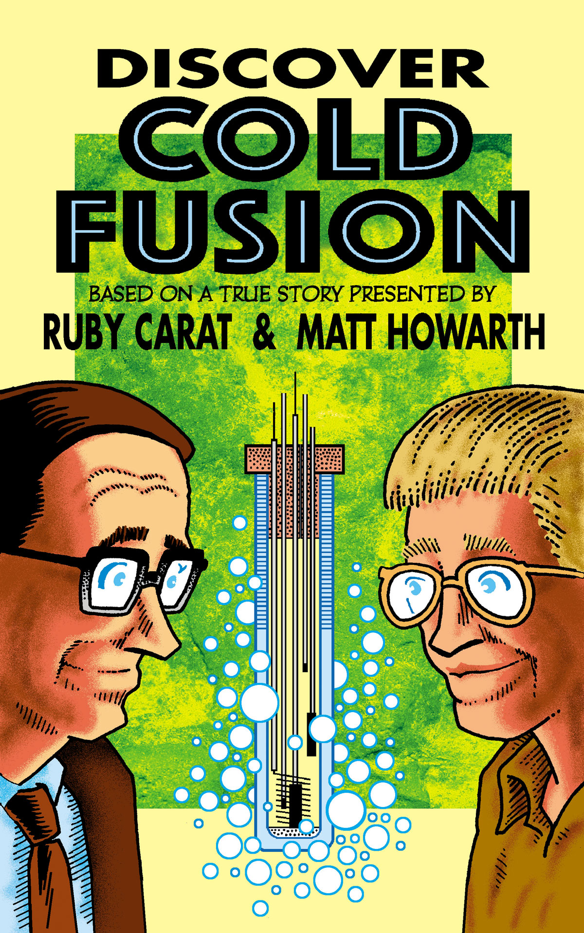 Based on true events, Discover Cold Fusion has text assembled by Ruby Carat and art by Matt Howarth. Research chemists and cold fusion scientists Michael McKubre and Melvin Miles consulted on historical and scientific elements.